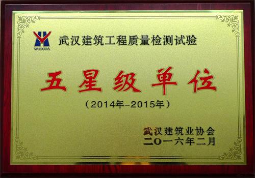 2013年我公司被武漢建筑業協會選為檢測試驗工作委員會副主任委員單位,2012-2017年連續(xù)五年被評為先進單位,2013、2015、2017年連續(xù)三屆被評為武漢市建設工程質量檢測機構五星級檢測單位。2017-20…